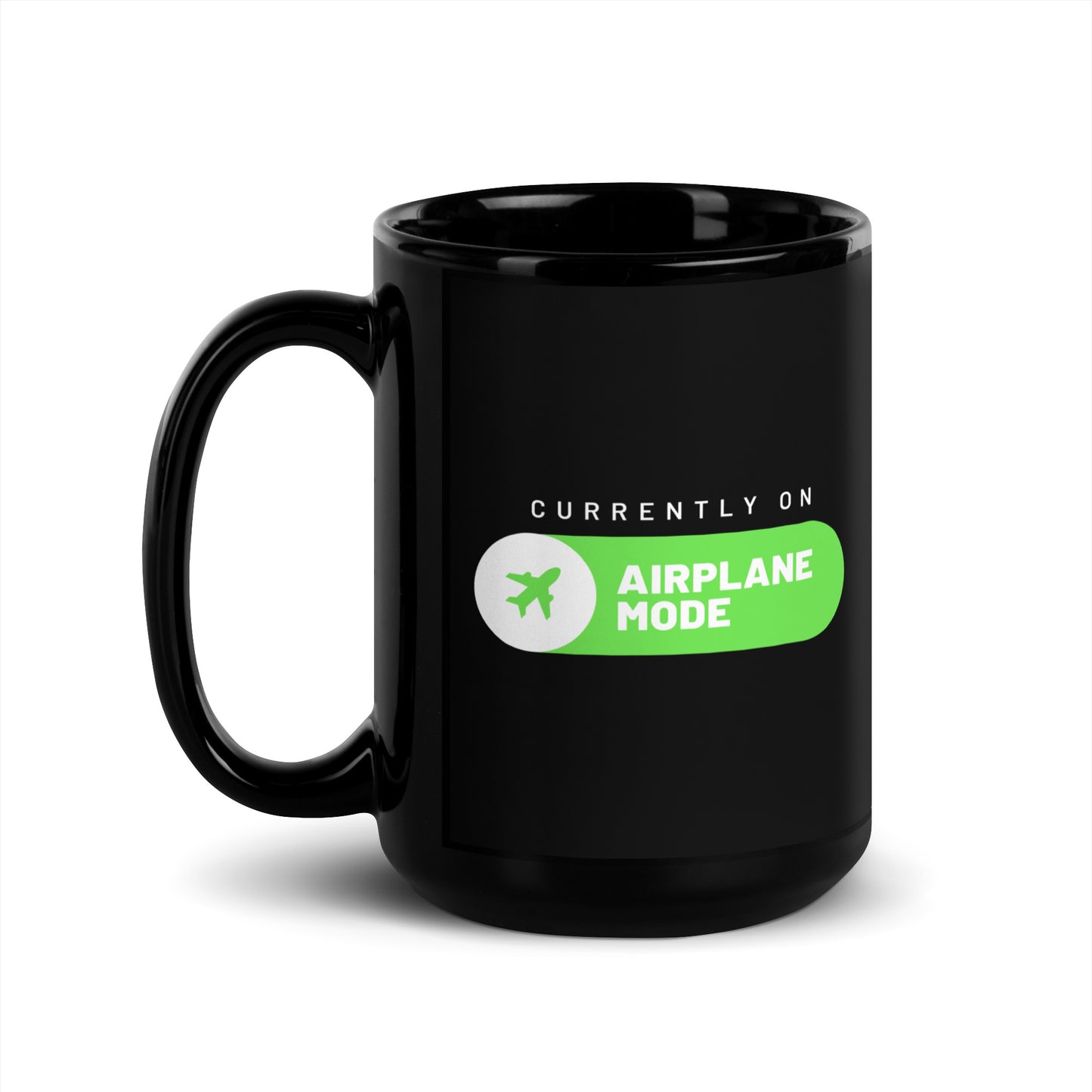 Currently On Airplane Mode Black Glossy Mug 15 oz. | Left Handed
